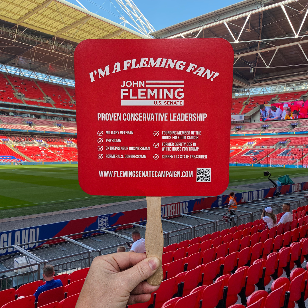 Beat the heat and show your support with the official John Fleming for U.S. Senate Hand Fan! Whether you’re at a campaign rally, festival, sporting event, or just enjoying a sunny Louisiana afternoon, this sturdy, eye-catching fan is the perfect way to stay cool and conservative.