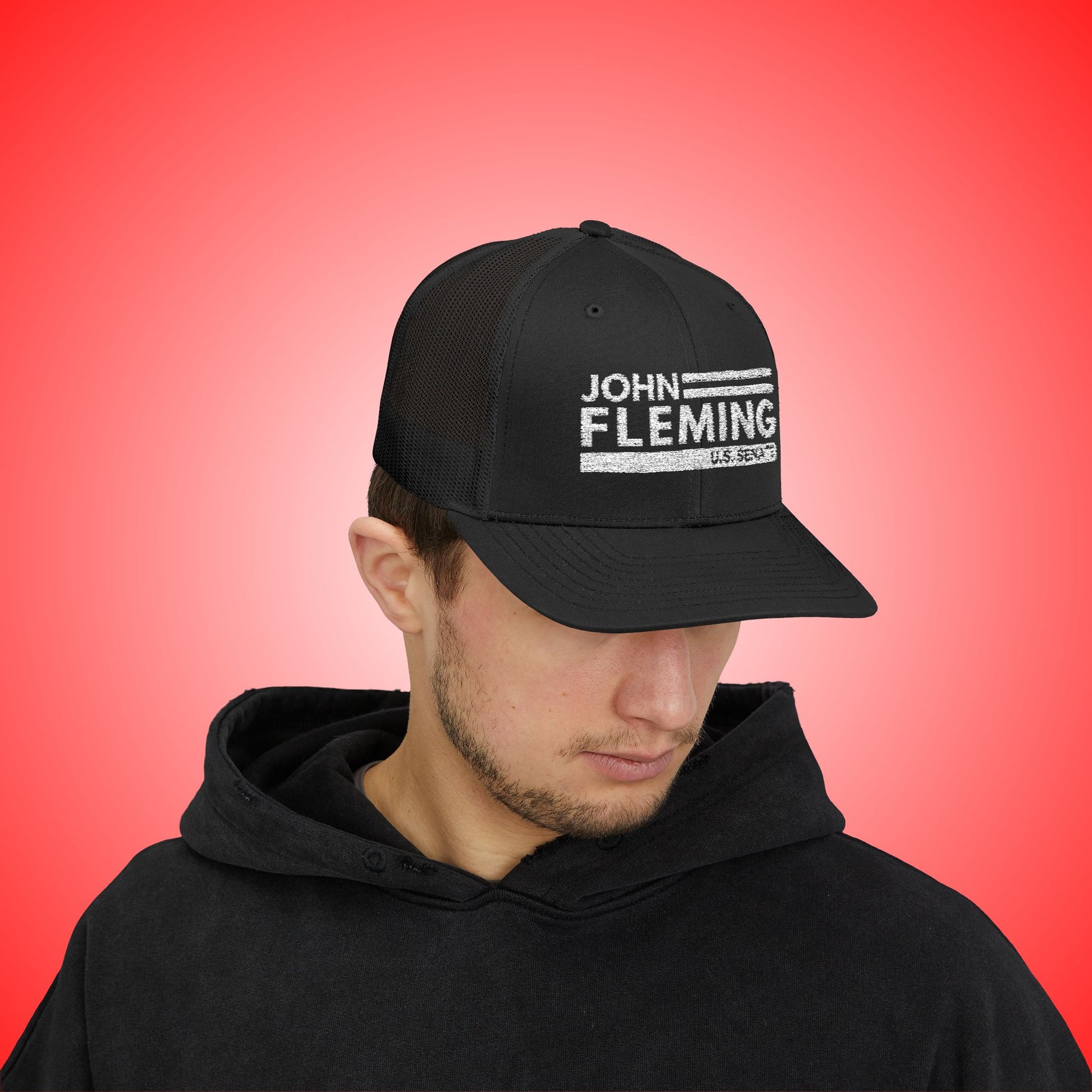 John Fleming U.S. Senate 2026 Black with White Logo Snapback Hat | Louisiana Conservative Embroidered Hat | Republican Hat Embroidered